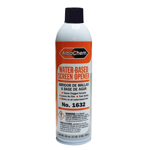AlbaChem Citrus Screen Opener Destapa instantáneamente cualquier malla mientras aún está sobre la prensa. Disuelve la mayoría de tipos de tinta (frescas y viejas). Está hecho para uso solamente con esténciles fotográficos o película cortada a mano, soluble en agua.